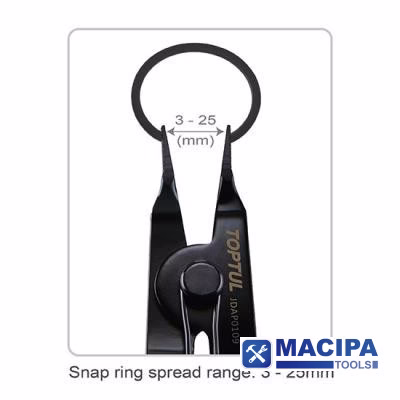 Clește pentru siguranțe exterioare (Seeger), îndoit la 90 de grade, lungime 127 mm, vârfuri anti-alunecare, pentru siguranțe de 10-25 mm, fabricat din oțel crom-vanadiu, conform DIN 5254.